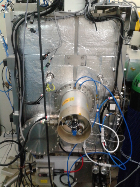 So, you start by gentle cleaning your silicone wafer and placing it in the deposition chamber. On the right photo, a colleague puts his wafers on the substrate holder which is later to be placed in the ion-beam deposition machine, standing just behind him. How does this machine work, you ask? Well, here it goes.