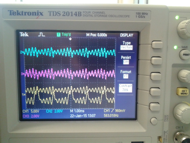This photo, I believe, tells you everything. I used +/- 9V from the lab power supply. To get the image like one on the photo, you would need to carefully adjust potentiometers. Keep in mind that Chua’s circuit does not always oscillate – only when your potentiometer adjustment is so good that it satisfies oscillation condition. We have 3 outputs, x,y and z from the schematics at the BNC ports. In ideal case they look somewhat like this: