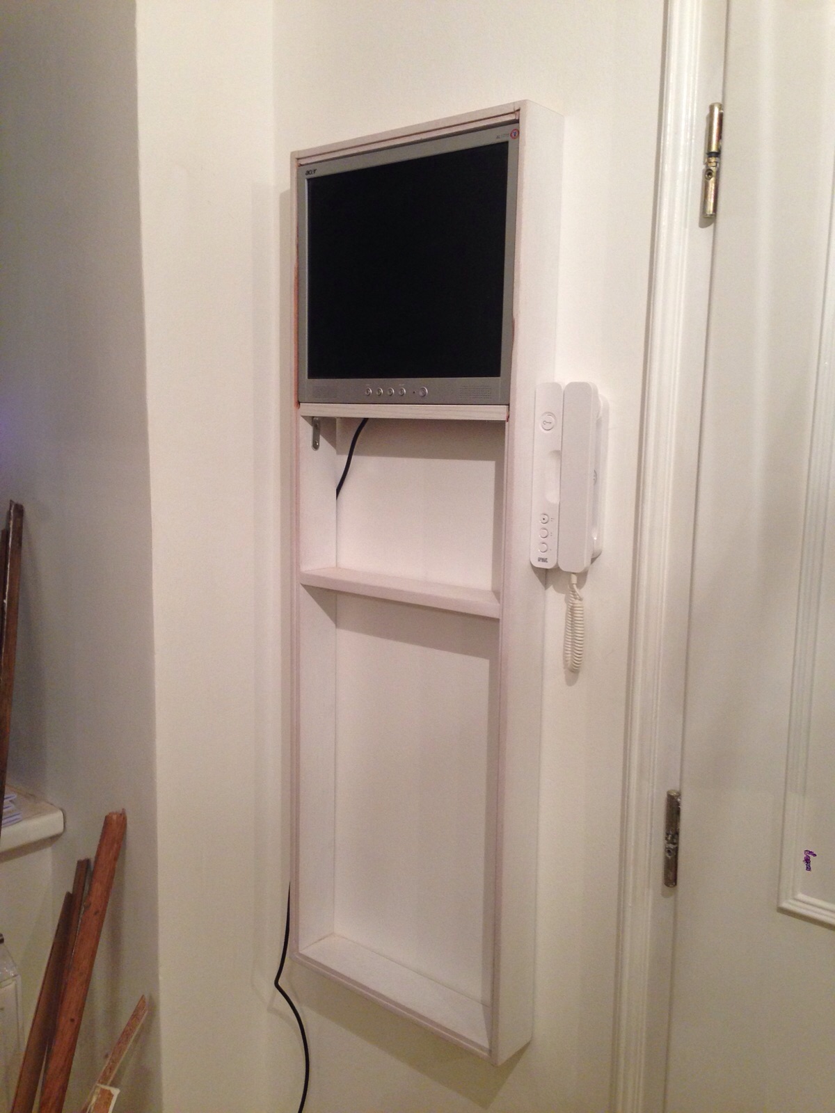 1. I ordered it..we had some reconstruction works at our apartment so I asked a carpenter if a wooden frame 118 x 38 x 8 cm would be a trouble to make. How does it hang..good question, I improvised with some spare materials, it s basically an L-shaped piece of iron with the hole. I took two of them and screwed them inside of the wooden frame. Then, I drilled two holes in the wall and screwed two big bolts upon which I later stacked the frame with L-shaped iron pieces. I don’t know how helpful this lousy illustration is, but unfortunately, I didnt take any photos. And sorry for using word “screwed” too often 🙂