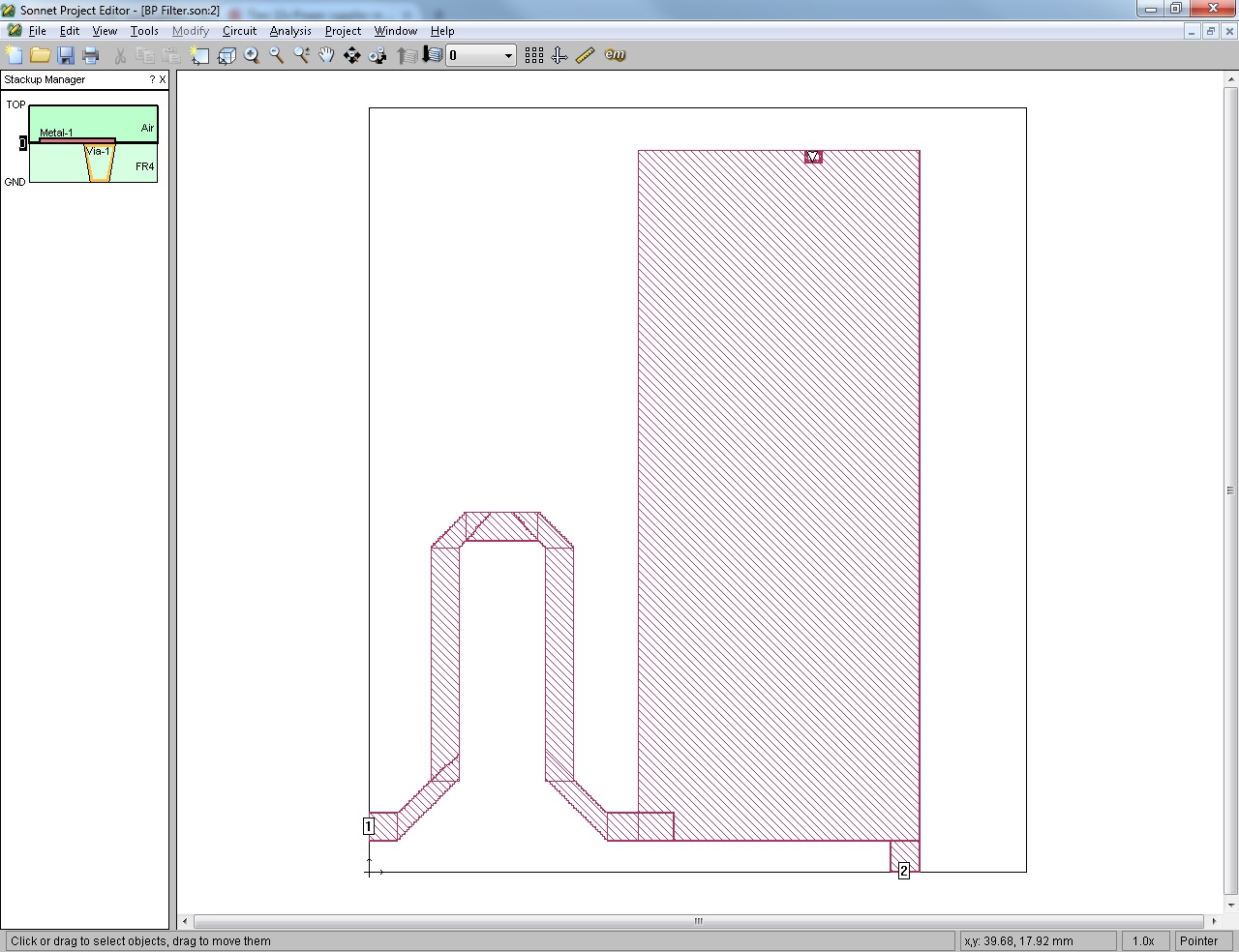 Working in microwave, you have to simulate everything. The analysis is often either to complicated and exhausting or over-simplified and won’t serve its purpose. That’s why there are many simulation toolboxes out there using finite element methods for you to finish your design with as little headache as possible. The most popular ones in RF and microwave design are CST and HFSS, a little less powerful AWR, sometimes even AnSys or Comsol Multiphysics. For this “simple” project of mine I decided to broaden my horizons and try out some less familiar but free solution. So I stumbled upon Sonnet Lite software, limited with crappy user interface and 32 MB of solution memory capacity. Anyways, an engineer is as good as much he can handle the limited resources so I decided to go for it. User’s manual by your side, you get standard procedure of 3D (rather 2.5D) simulation: draw geometry, define materials, define electrical ports, mesh, set solver and press “play”. I picked geometrical parameters (line width, length etc.) as was roughly estimated in the textbook, hoping that simulation will give me a chance to fit them later. Should I have played it well, pleasing solution should come out soon.